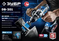 Бесщеточная дрель-шуруповерт ЗУБР 20В, 2 АКБ (1,5Ач), в кейсе, Профессионал. DB-20 A5