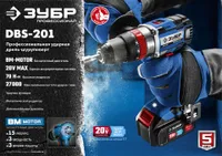 Бесщеточная ударная дрель-шуруповерт ЗУБР Профессионал Т7, 20 В, 70 Н·м, без АКБ (DBS-201)